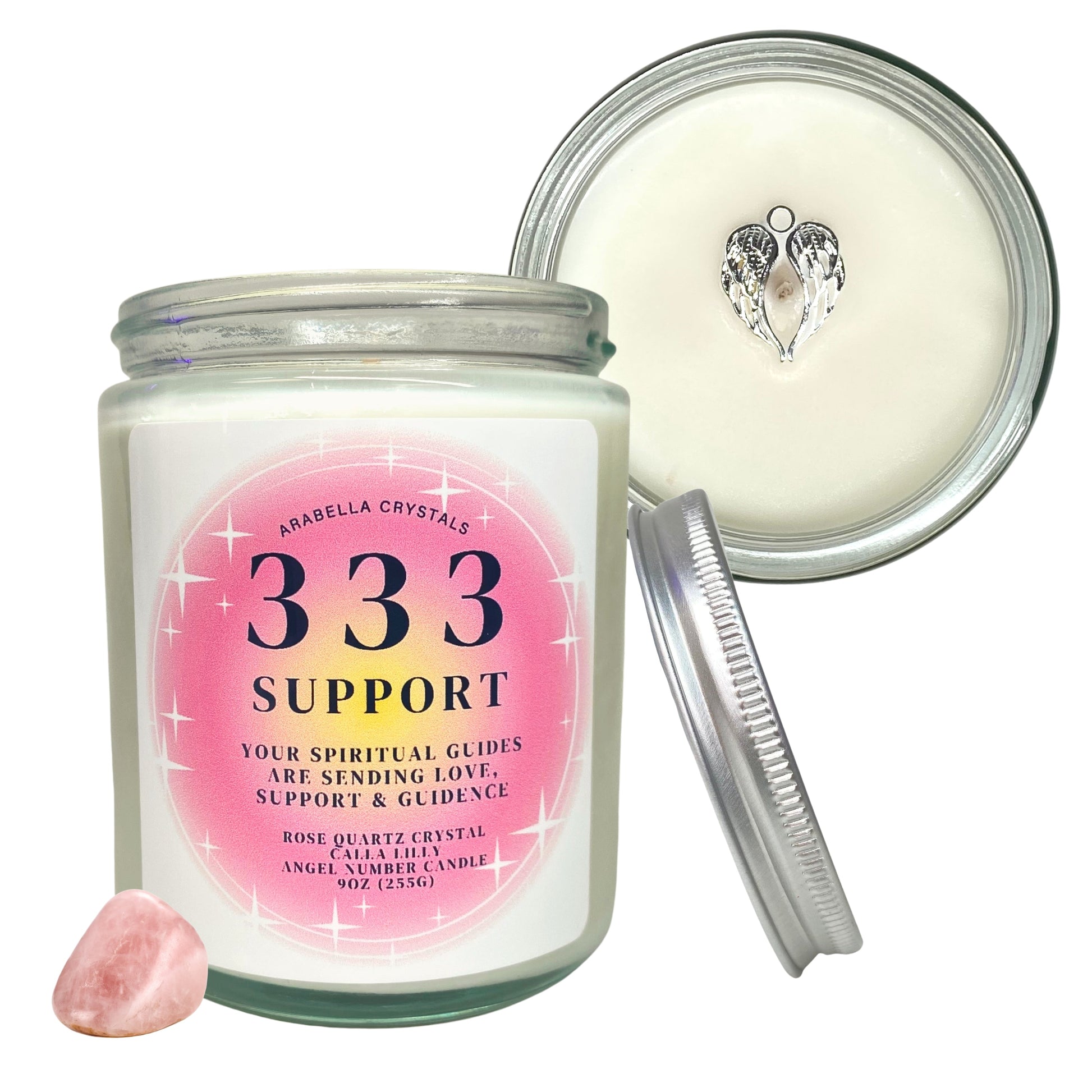 ✨ 333 Angel Number Candle with Rose Quartz ✨