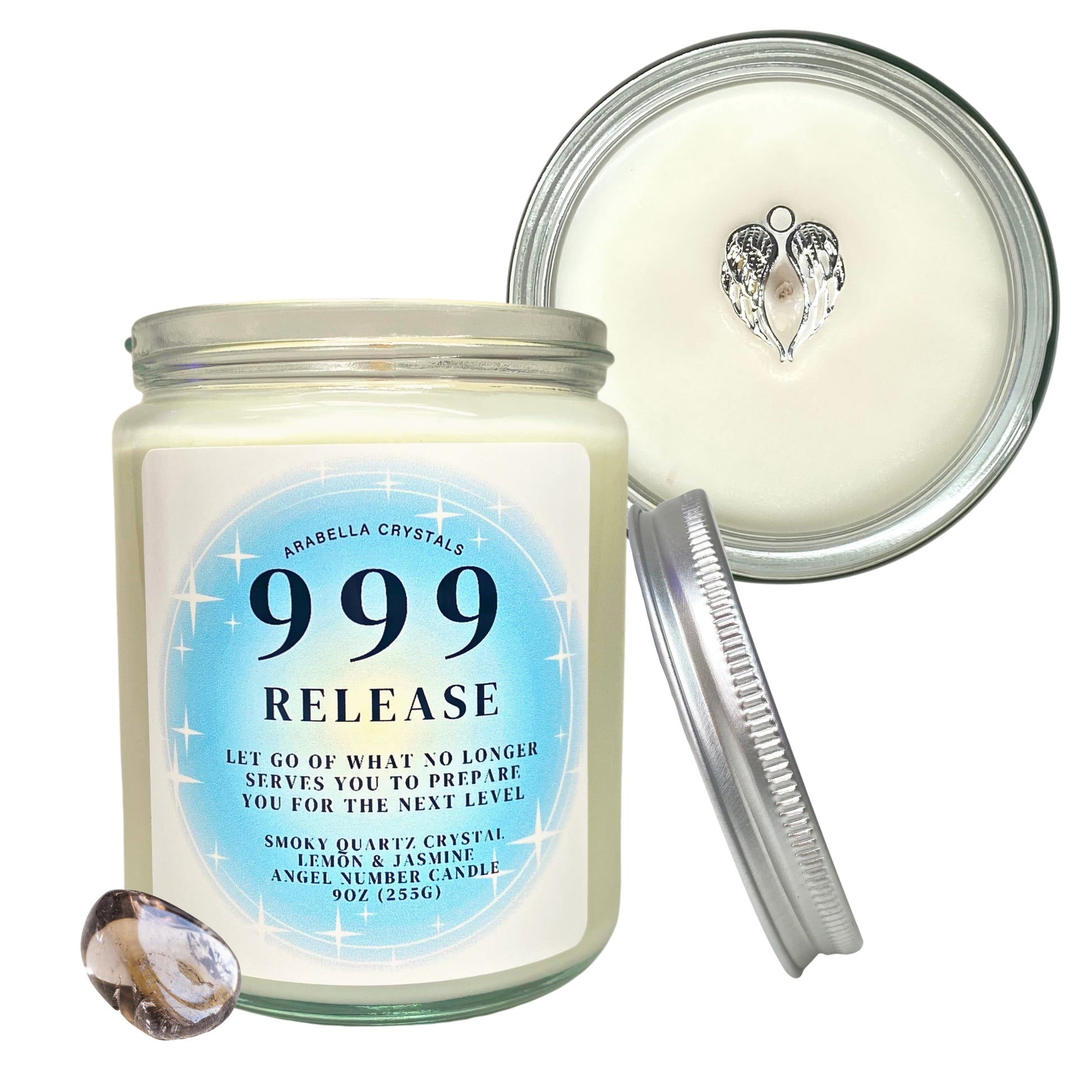 Embrace the energy of transformation and closure with our 999 Angel Number Candle, infused with the grounding power of Smoky Quartz and the refreshing fragrance of Lemon & Jasmine. The 999 Angel Number signals that it's time to release the old and make room for new beginnings. This is a moment for closure, personal growth, and the shedding of what no longer serves you. This candle guides you to let go with love, bringing peace and clarity as you step into a new chapter.