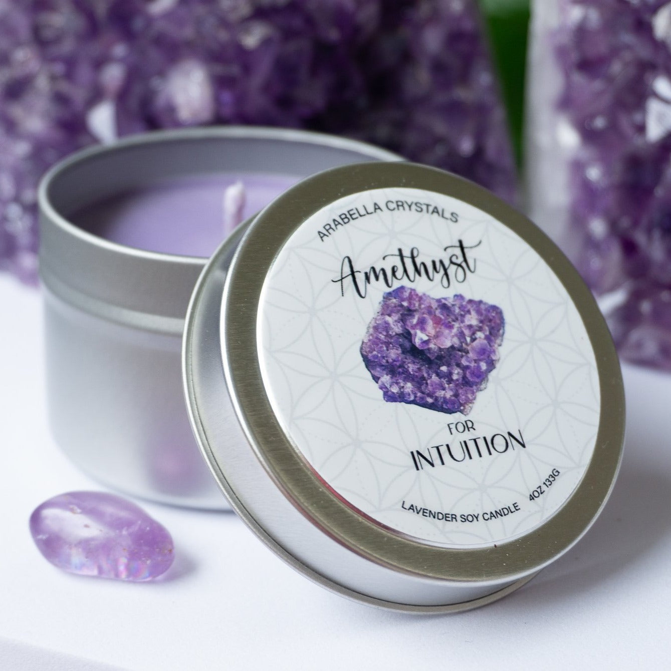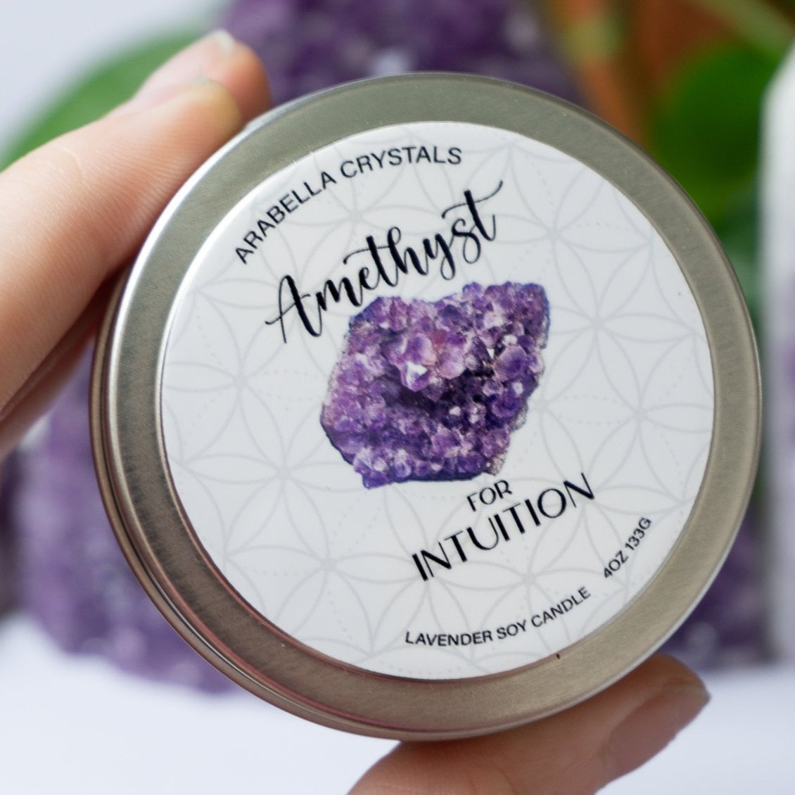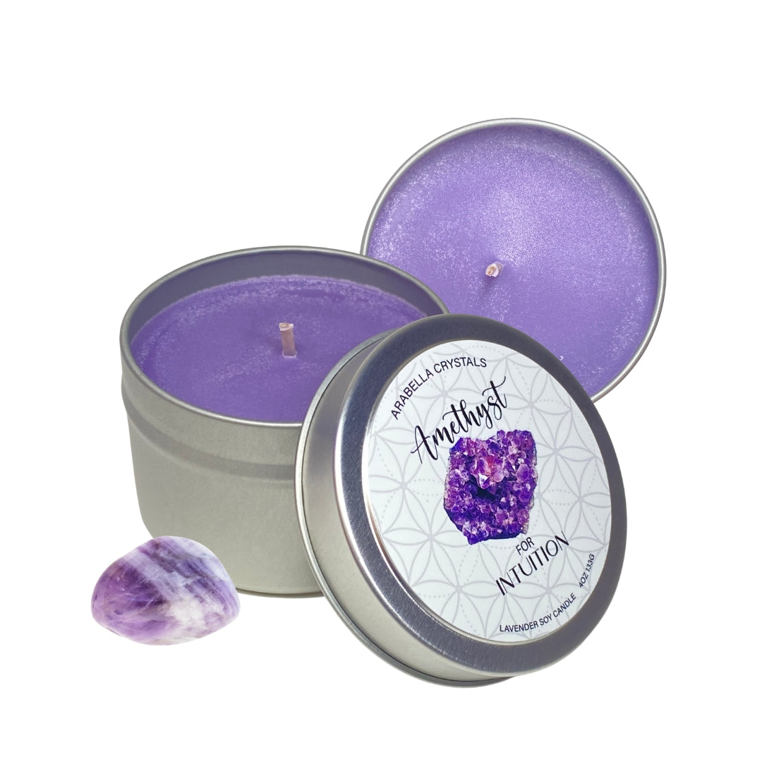 Amethyst Crystal Vegan Candle - Lavender & Citrus Scent | Healing Crystal Candles for the Soul
