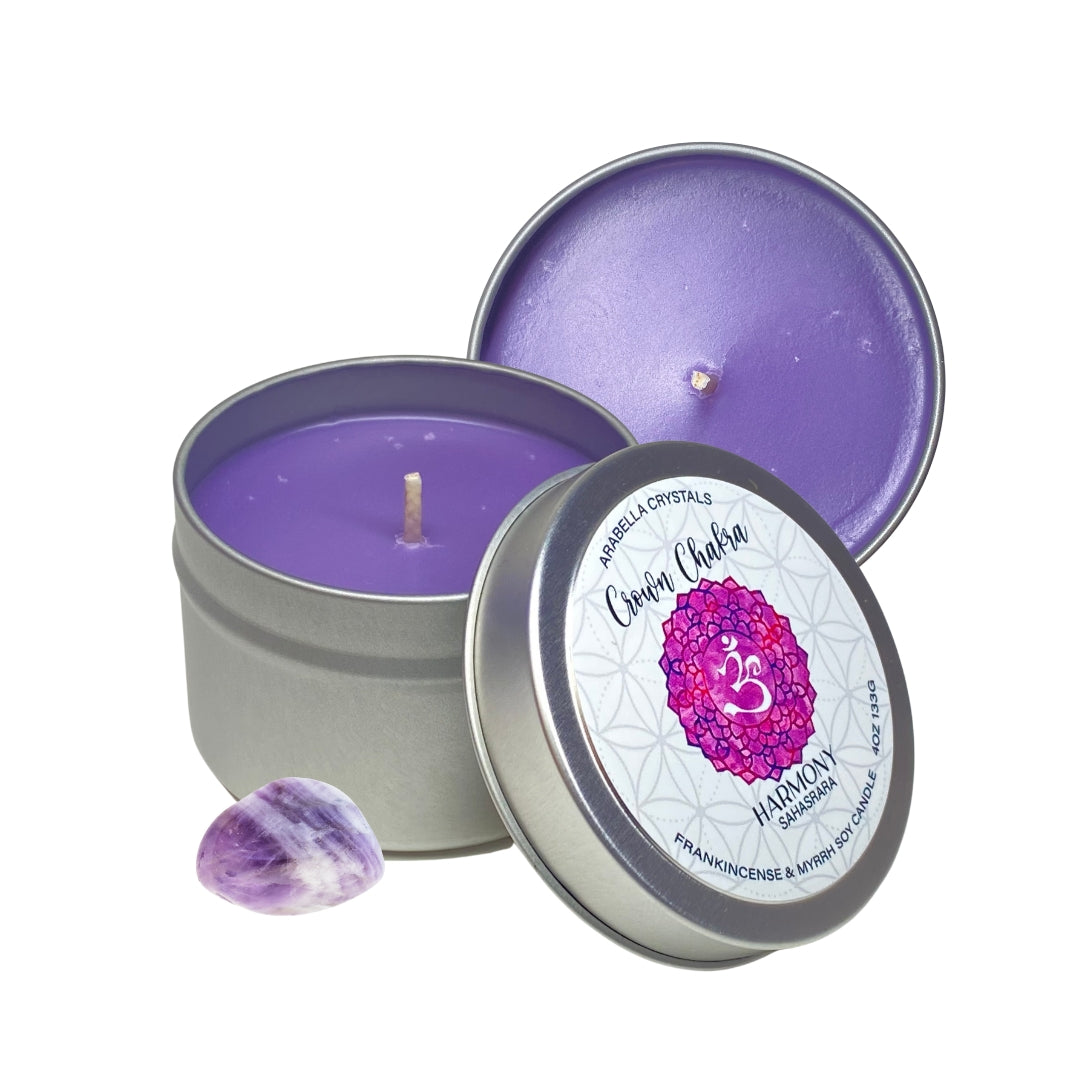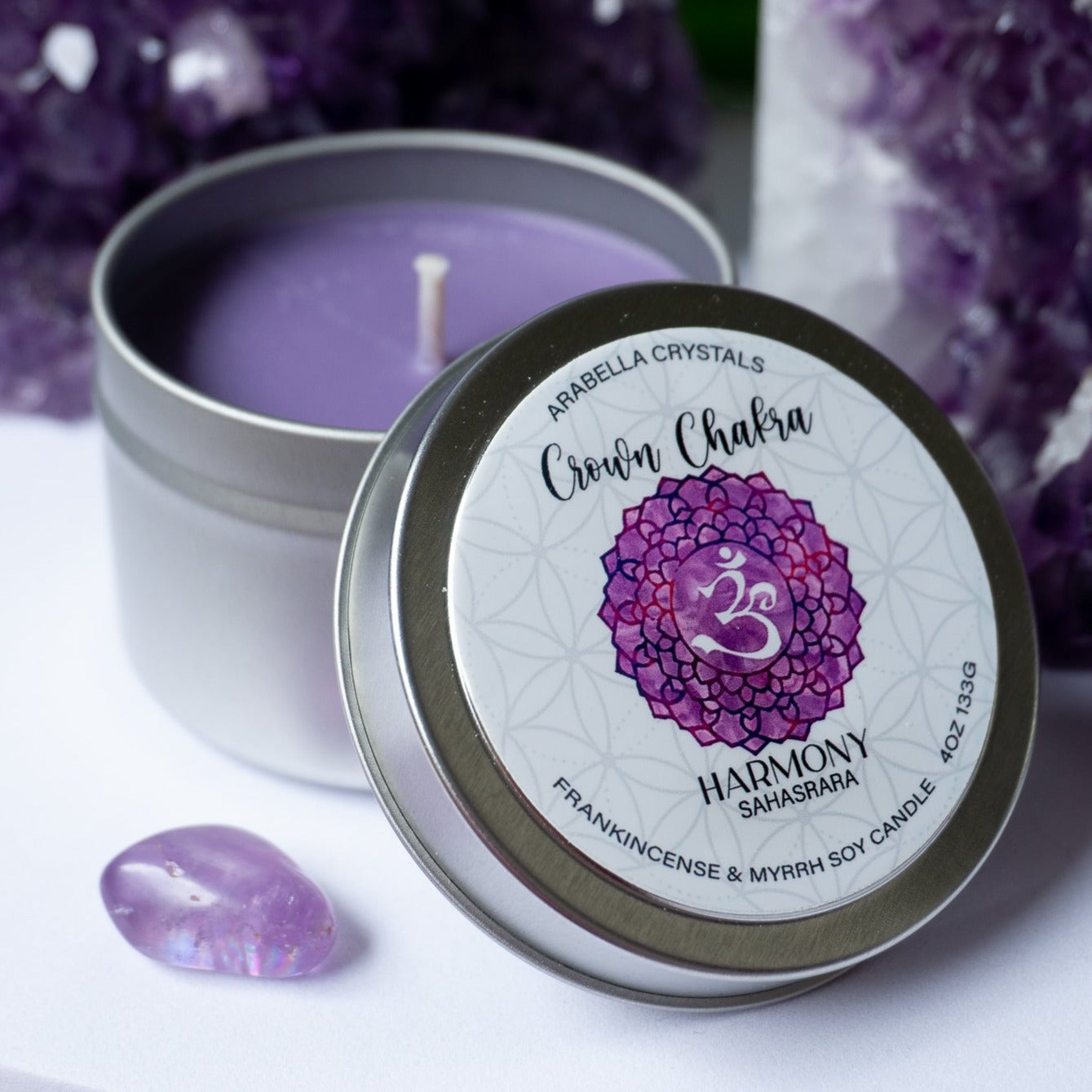 Step into a higher state of consciousness and connect to your divine self with our Crown Chakra Candle. Infused with the powerful energy of Amethyst and the sacred, ancient fragrance of Frankincense & Myrrh, this candle is designed to elevate your spirit, calm your mind, and promote profound spiritual healing. Whether you're meditating, practicing mindfulness, or seeking inner peace, the soothing aroma and crystal energy will guide you on your journey.