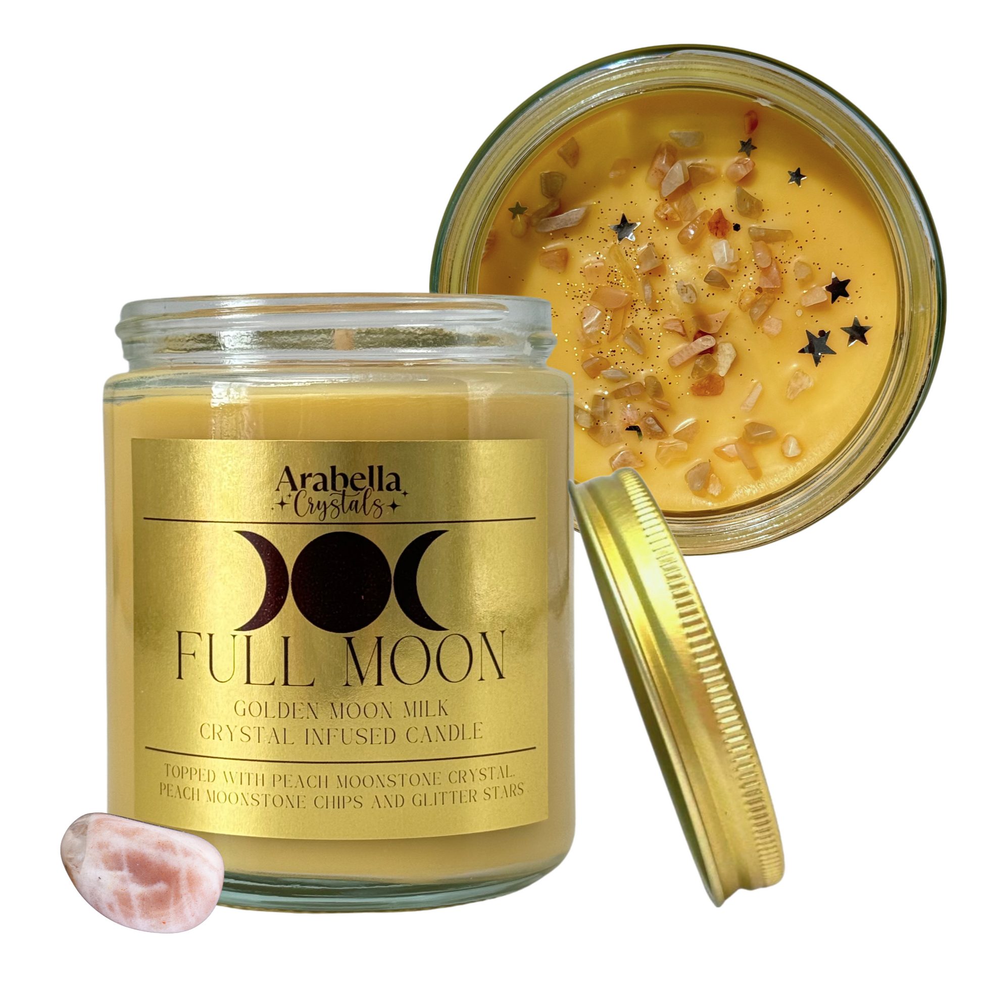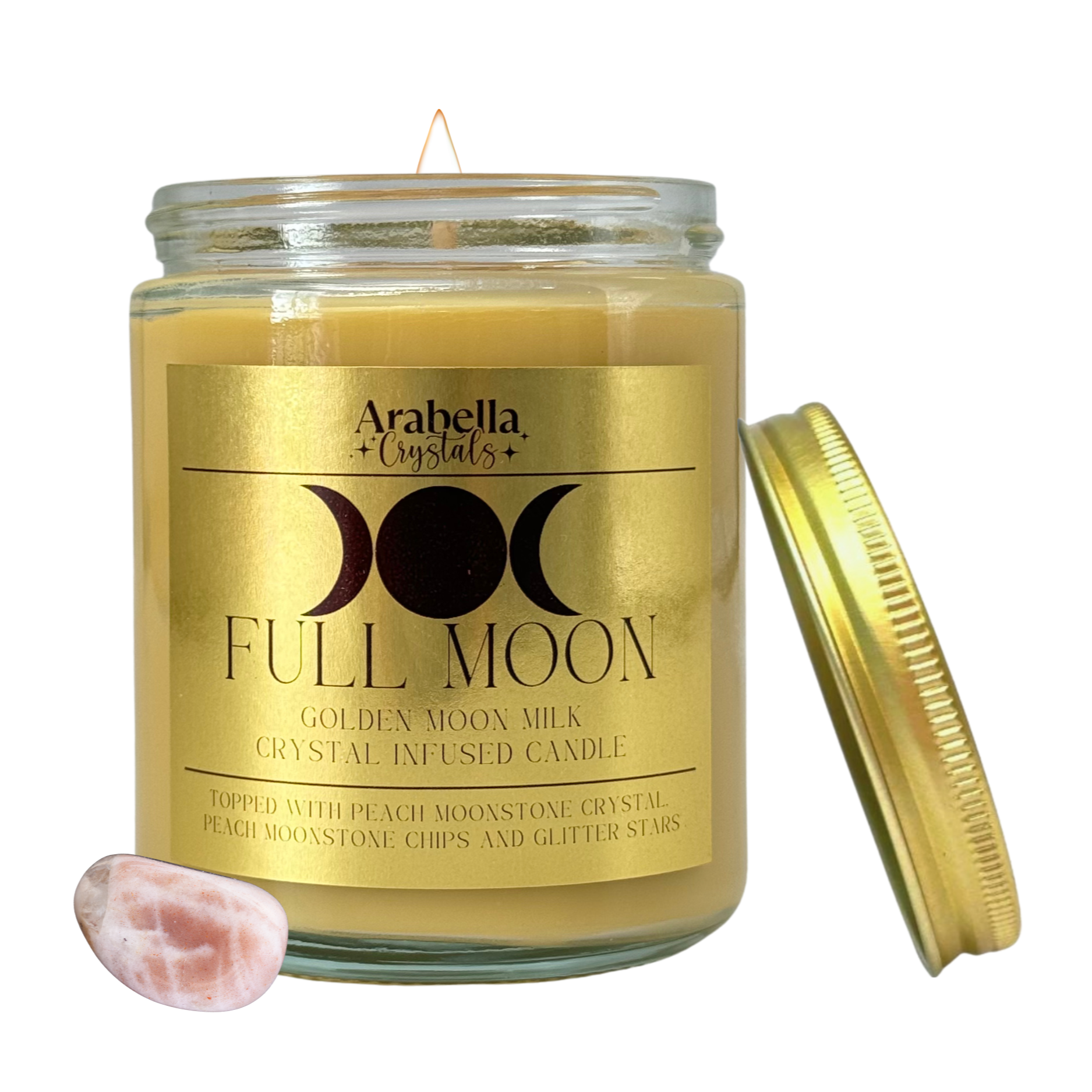 Full Moon Ritual Candle - Golden Moon Milk Scent | Hidden Peach Moonstone for Spiritual Alignment