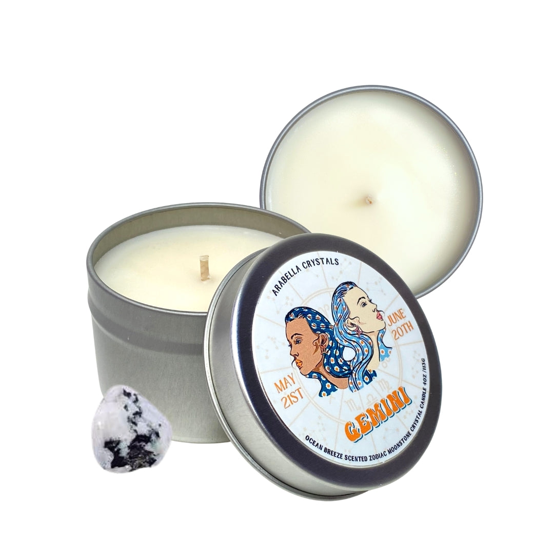 ✨ Gemini Zodiac Crystal Candle with Rainbow Moonstone ✨