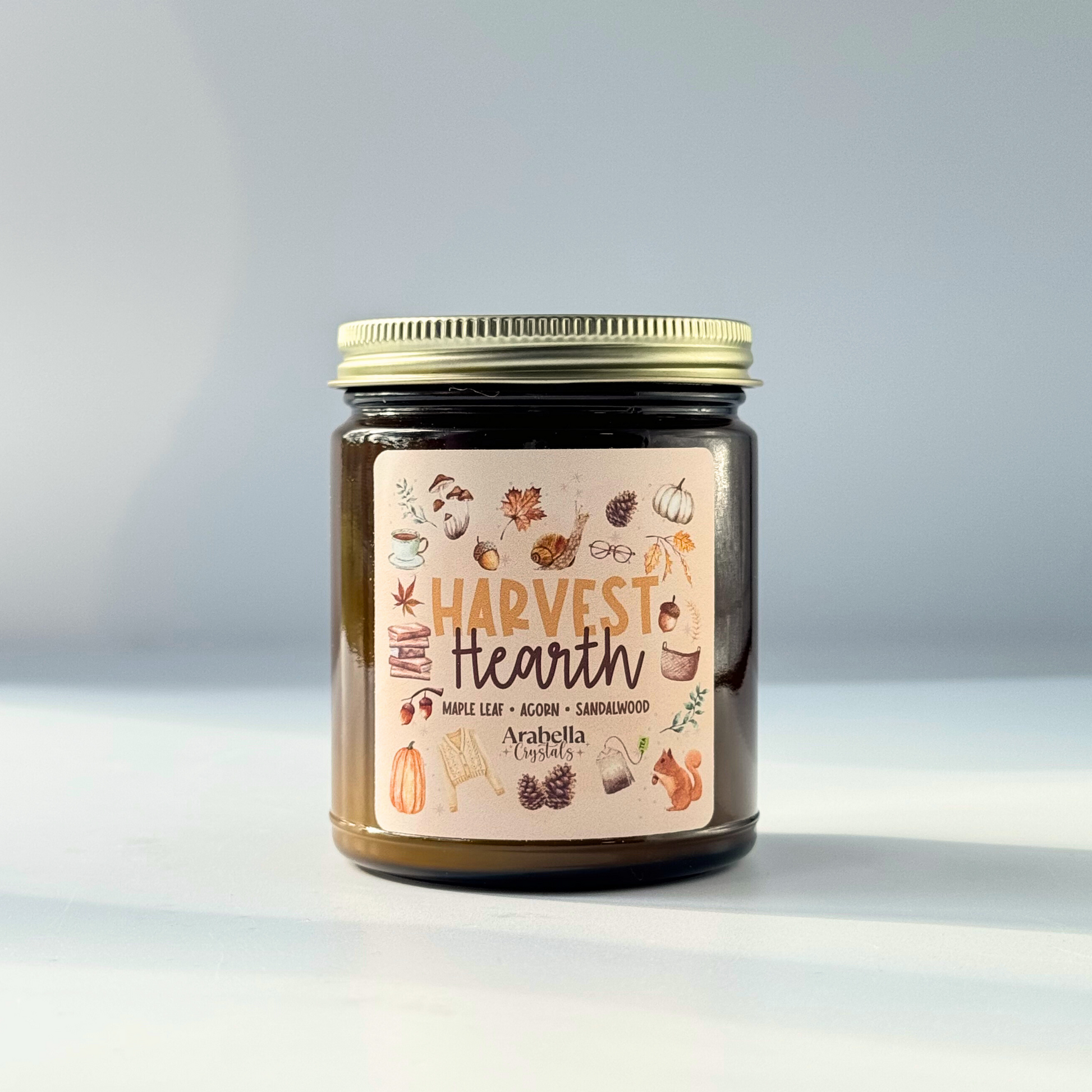 Gather ‘round the glow of Harvest Hearth, a candle crafted to honor the turning of the season, the warmth of home, and the magic of gathering. Blending golden leaves, oak woods, and soft spice, this autumn-inspired scent wraps you in comfort while a hidden Citrine crystal lies within—radiating joy, abundance, and solar energy.