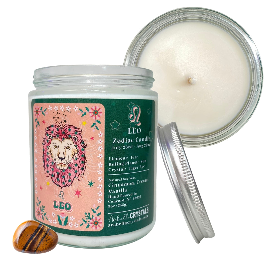 Get ready to step into the spotlight with our Leo Zodiac Candle, crafted to celebrate the bold, vibrant energy of Leo (July 23rd - August 22nd). Represented by the majestic lion, Leos are natural-born leaders who thrive on creativity, passion, and radiance. They’re the life of the party, the center of attention, and the royals of the zodiac. This candle captures that fiery, dynamic spirit, blending a luxurious scent with a powerful gemstone to ignite your inner lion.