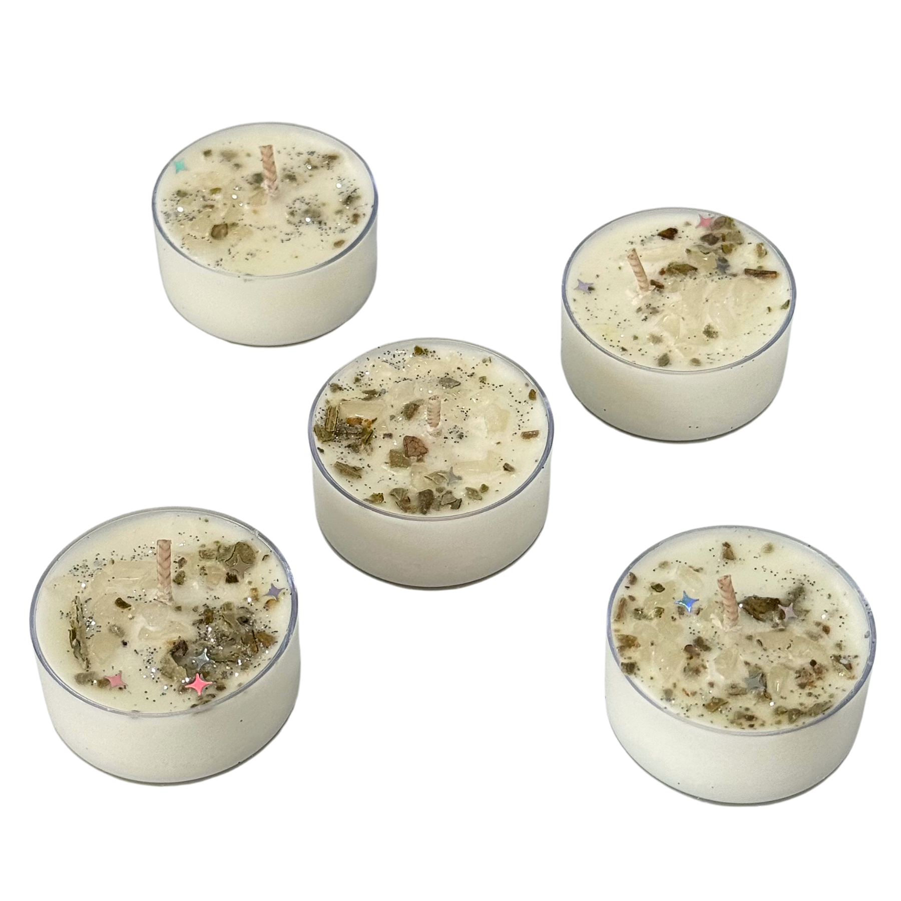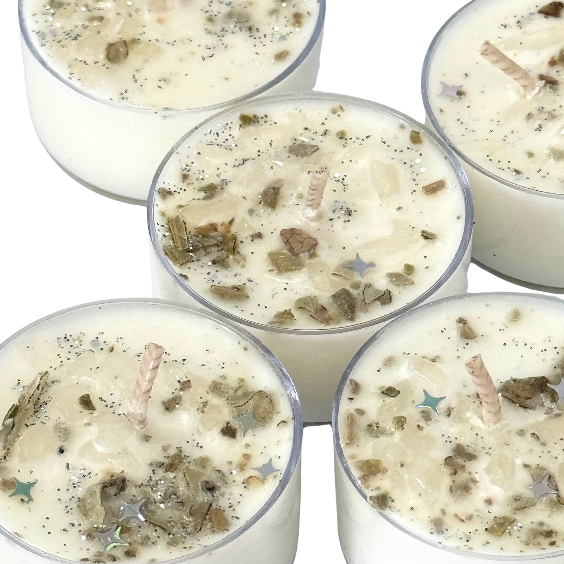 Infused with Quartz Chips, these tea lights are designed to energize and amplify your intentions, making them ideal for ritual work, meditation, or creating a sacred space. Quartz is known as the "Master Healer," helping to elevate your vibration and amplify any intention set during use. Clear Quartz helps to clear negative energy, cleanse the aura, and provide clarity of mind.