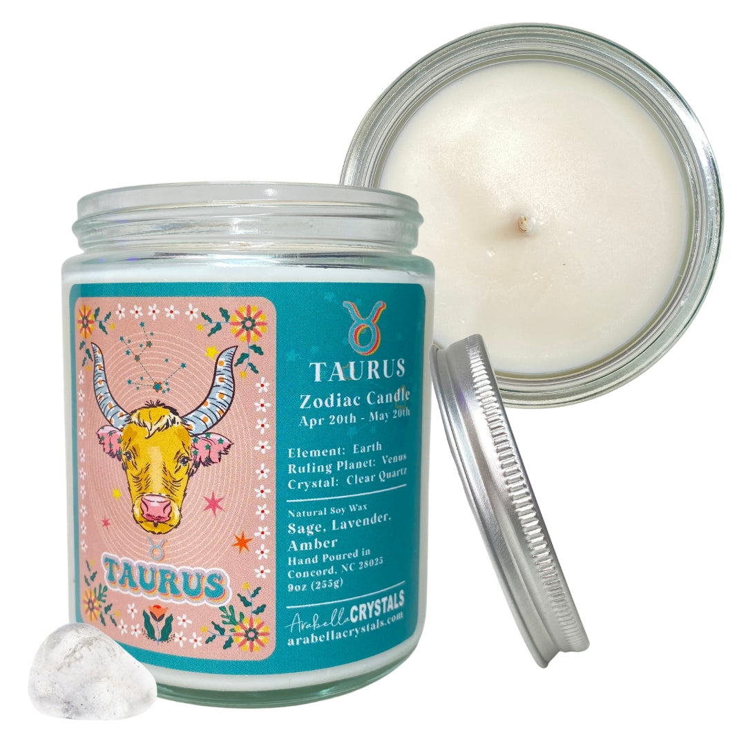 ✨ Taurus Zodiac Candle with Clear Quartz ✨