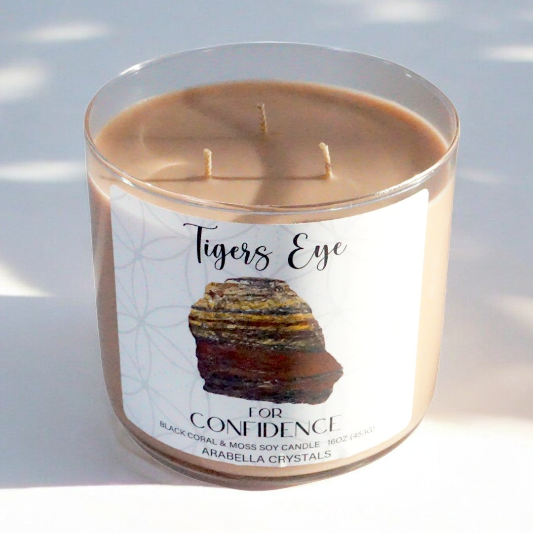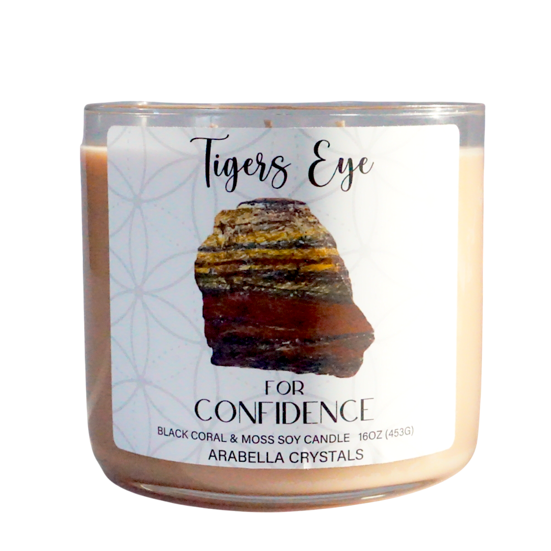Step into your power with our Tiger's Eye Crystal Candle, infused with the bold and captivating fragrance of Black Coral & Moss. Designed to boost confidence, ignite your inner strength, and enhance your personal power, this candle blends deep, sensual marine notes with earthy, aromatic scents. Paired with the grounding and protective energy of Tiger's Eye, this candle is your perfect companion for manifestation, courage, and abundance.