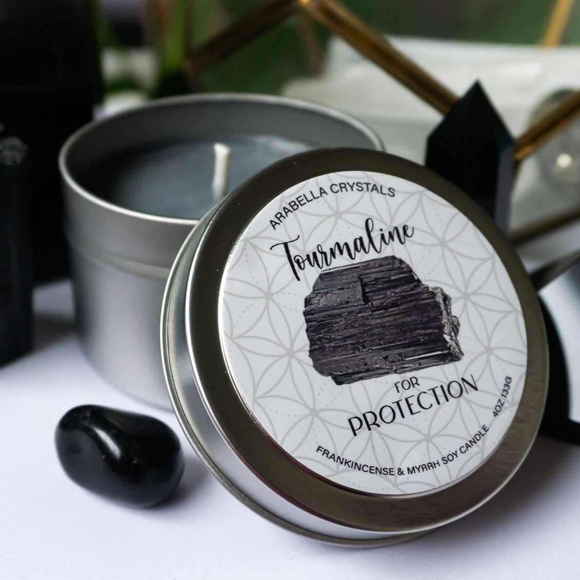 ✨ Light this candle to clear negativity, strengthen your aura, and bring balance and protection to your energy field with the powerful combination of Black Tourmaline and Frankincense & Myrrh. ✨