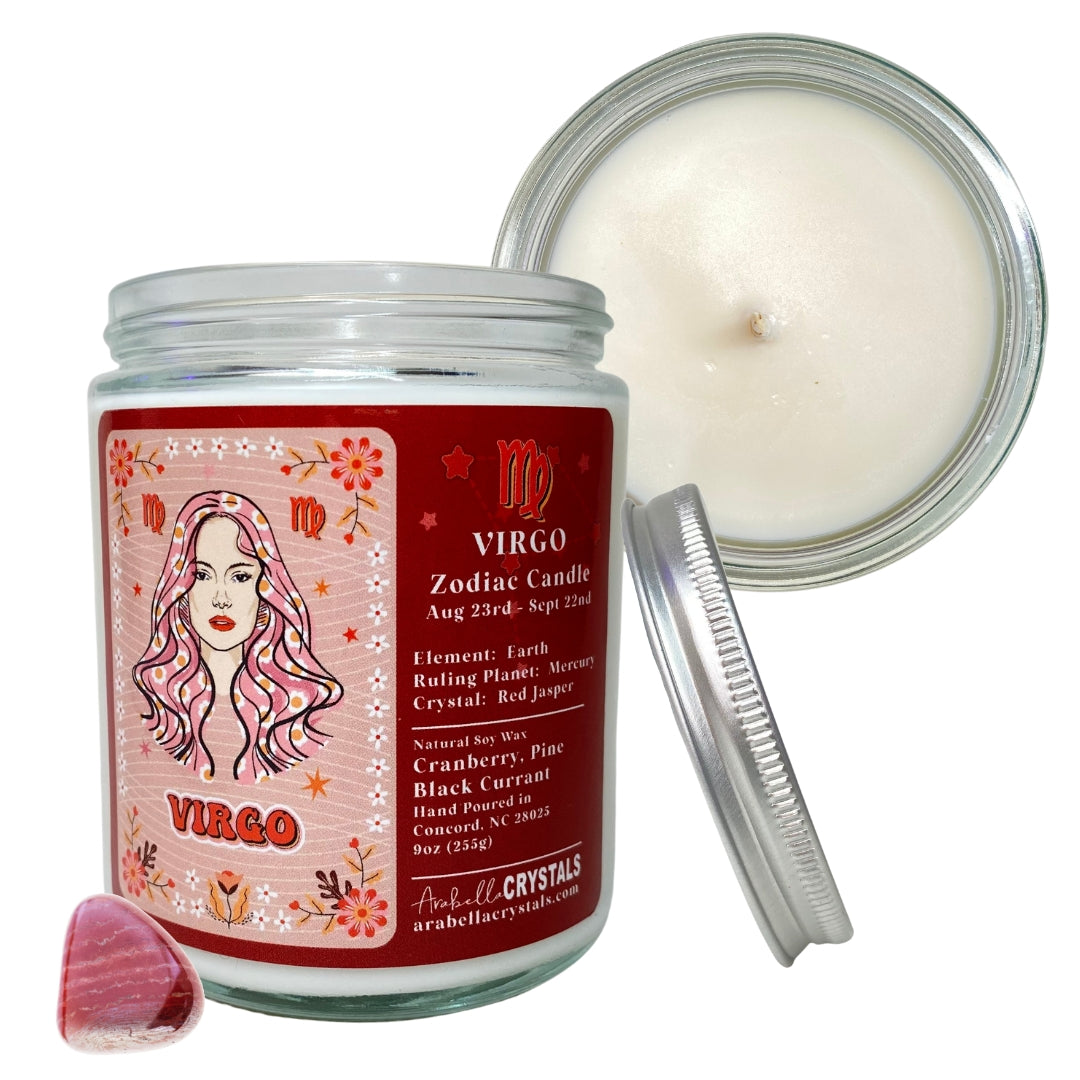 Celebrate the meticulous, grounded, and nurturing energy of Virgo with our Virgo Zodiac Candle, infused with a sophisticated blend of Cranberry, Pine, and Black Currant and the balancing energy of Red Jasper. Perfect for those born under the Virgo sign or anyone seeking to embody Virgo’s practical, detail-oriented nature, this candle will help you embrace your perfectionist side while remaining deeply connected to the Earth. Whether you're creating a space for focus, clarity, or organization, this candle supports your journey toward excellence and balance.